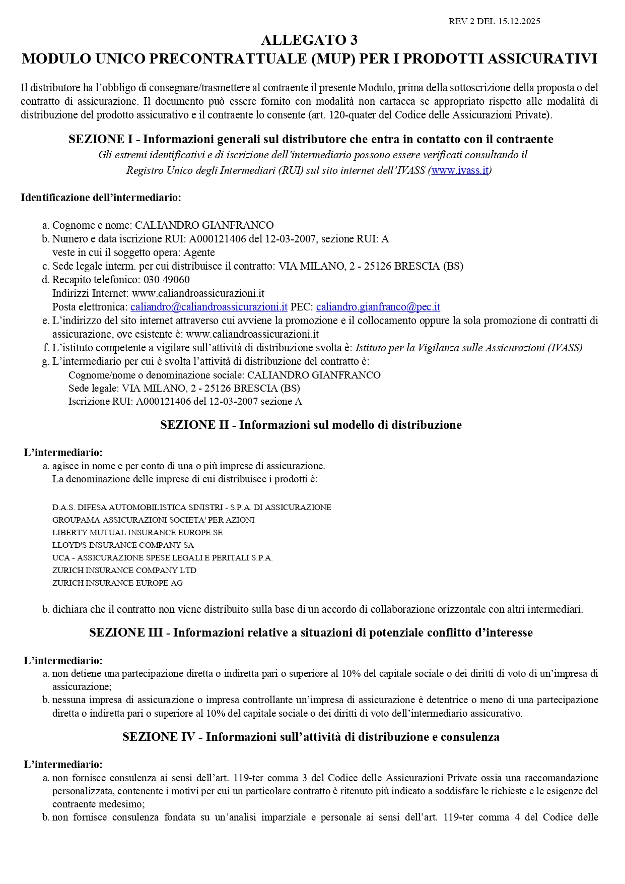 MODULO UNICO PRECONTRATTUALE (MUP) PER I PRODOTTI ASSICURATIVI